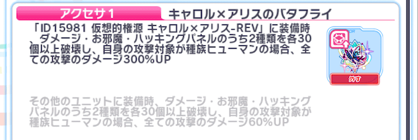 「仮想解析戦+」をクリアすると、「仮想的権源 キャロル×アリス-REV」のシンボルアクセサが手に入る!