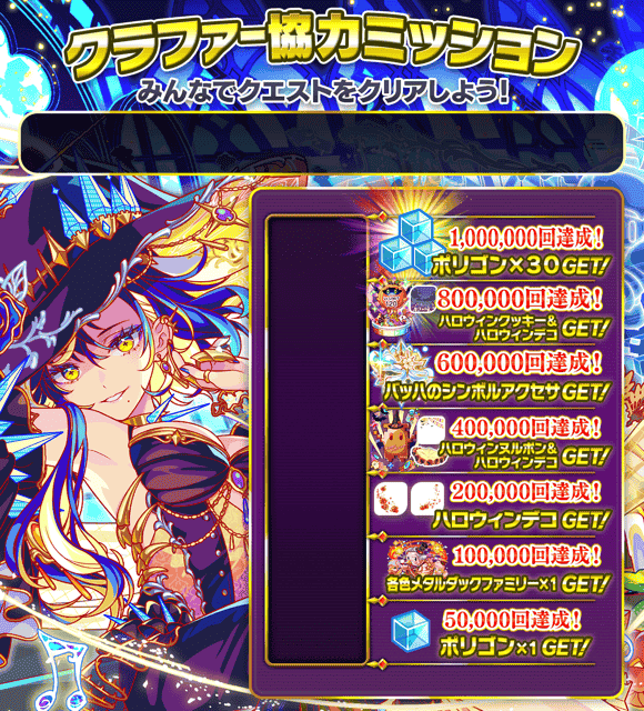 全ユーザーのクエストクリア回数に応じて、ポリゴンや「総奏の音父律 バッハ」のシンボルアクセサ、期間限定デコなどの豪華報酬をGET♪