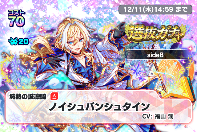11/29(土)からは「選抜ガチャsideA」「選抜ガチャsideB」が開催予定!