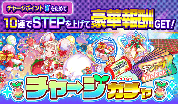 ログインやエナジー消費で得られるポイントを集めてチャージガチャをひこう!