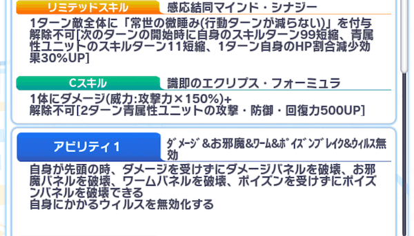 ※ユニットアビリティにて「ユニット2体がユニットスキルを発動した時〜」のように記載のある効果について、リミテッドスキルはスキル発動回数にカウントされません。