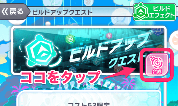 「ビルドアップコイン」を集めたら、ビルドアップクエスト内の「合成」から「ブレンドシステム」へGO!