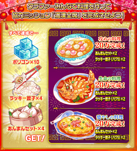 ミッション達成でポリゴンや「満漢全席ガチャチケット」などをGET♪