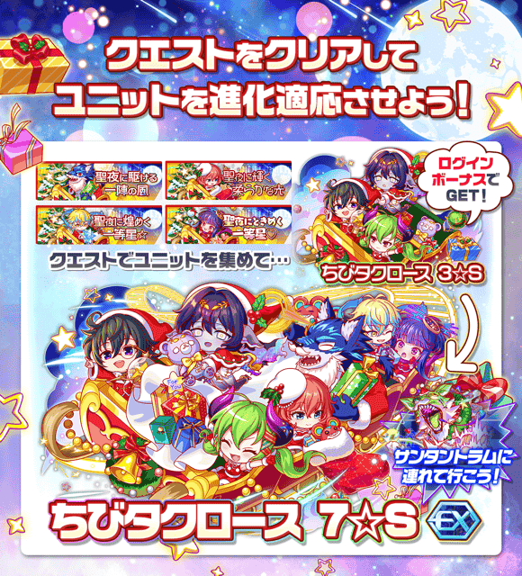 こちらのクエストは必ず「聖夜疾走 『ちびタクロース 7☆S』」をパーティに編成して挑戦しよう!